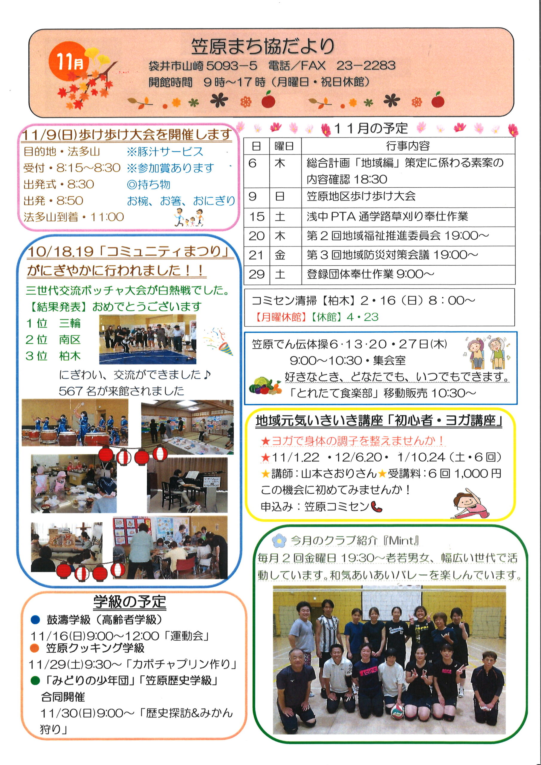 袋井市コミュニティセンターホーム > 協議会の取り組み > 「笠原まち協だより」11月号を発行しました。