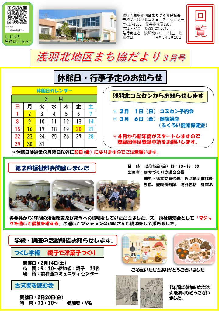 袋井市コミュニティセンターホーム > 協議会の取り組み > 浅羽北地区まち協だより3月号を発行しました