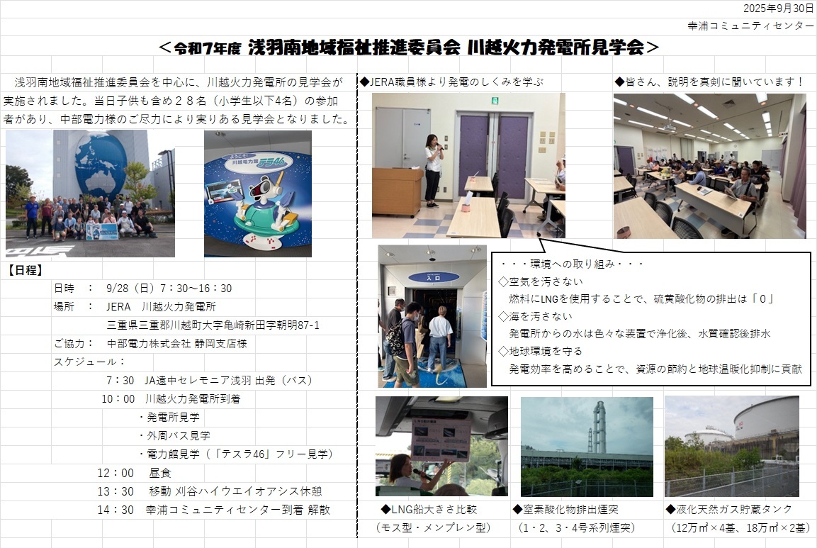 袋井市コミュニティセンターホーム > 新着情報 > 令和7年度 浅羽南地域福祉推進委員会 「川越火力発電所見学会」を行いました。