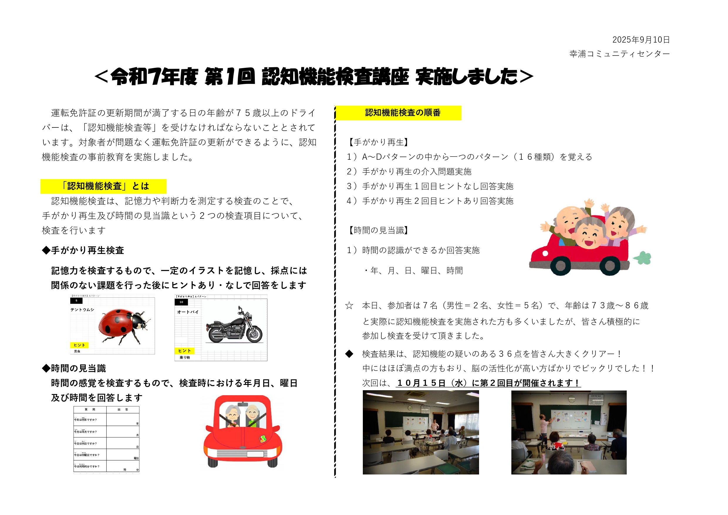 袋井市コミュニティセンターホーム > 新着情報 > 令和7年度「第1回認知機能検査講座」を行いました。