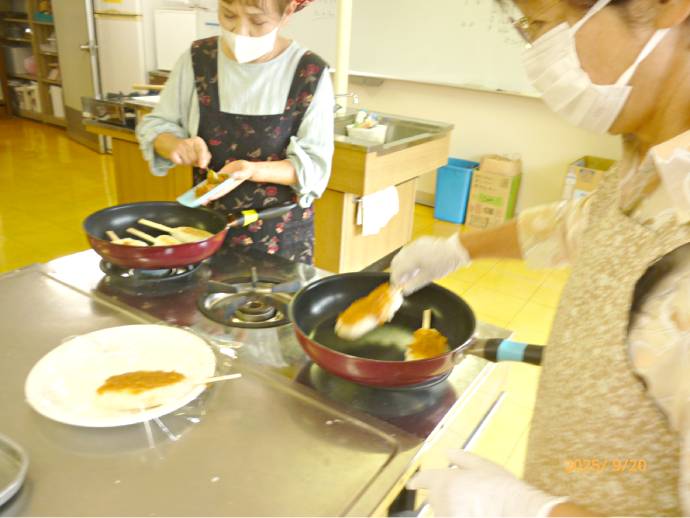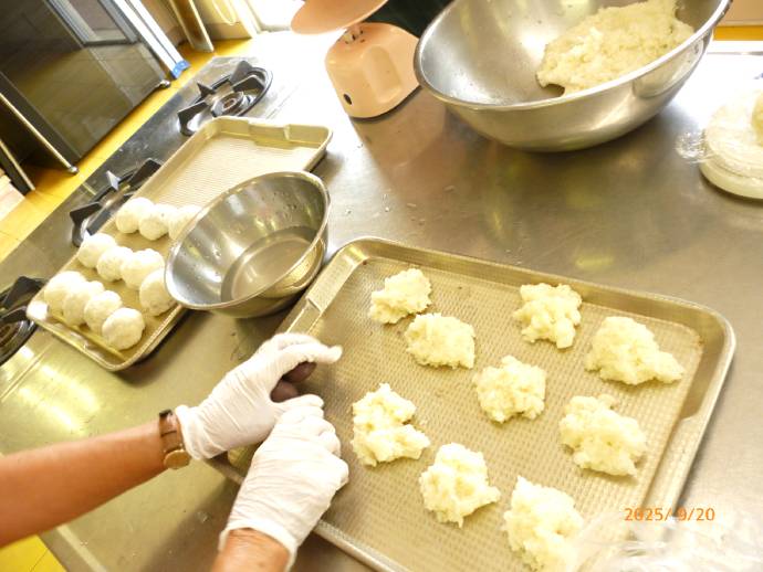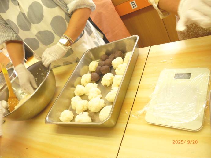 会議後は、秋のお彼岸に合わせて食文化学習として「おはぎ」作りをしました。