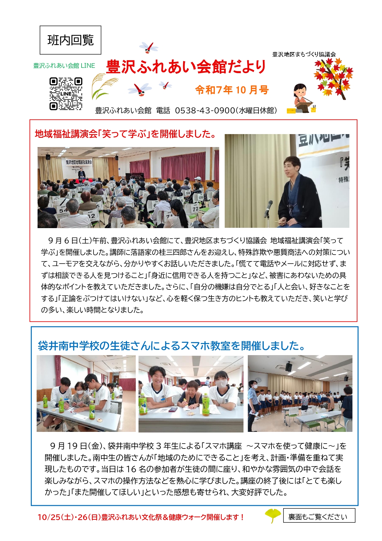 袋井市コミュニティセンターホーム > 新着情報 > 豊沢ふれあい会館だより(10月号)を発行しました。