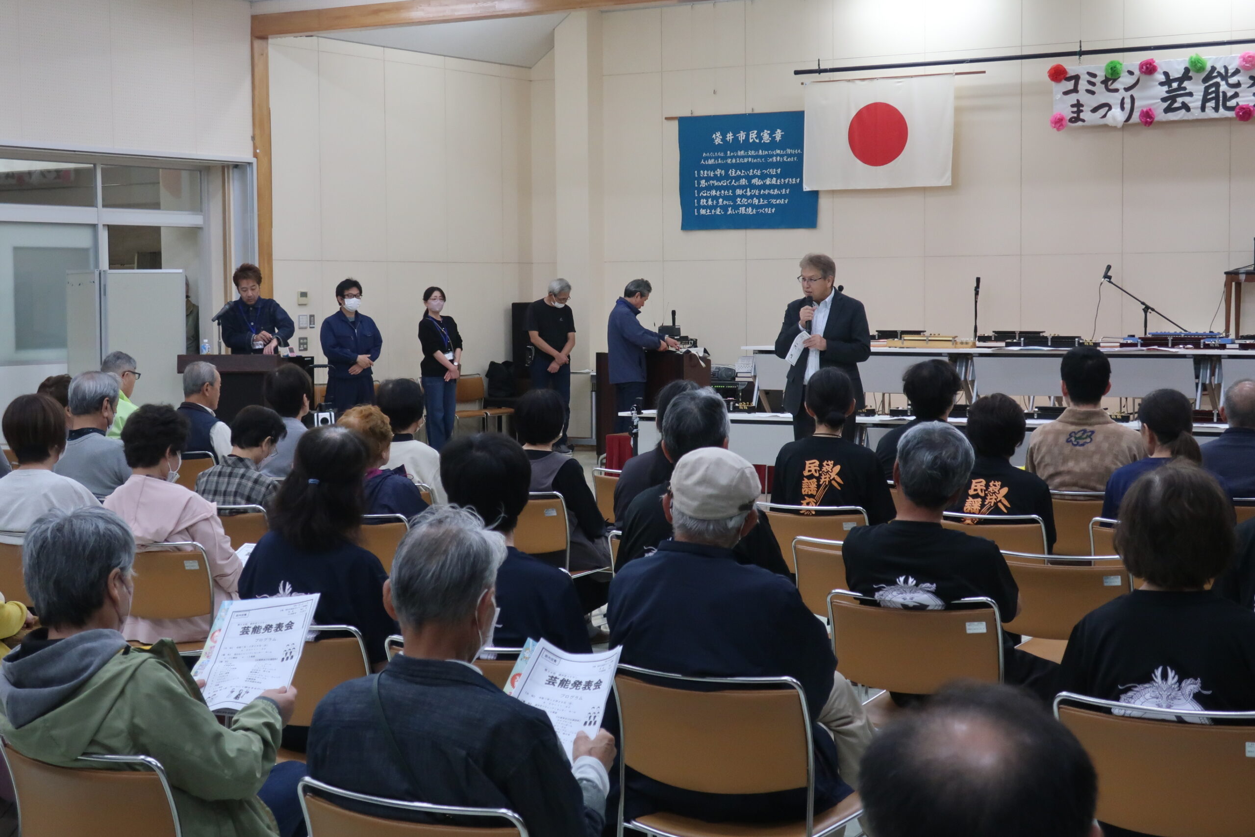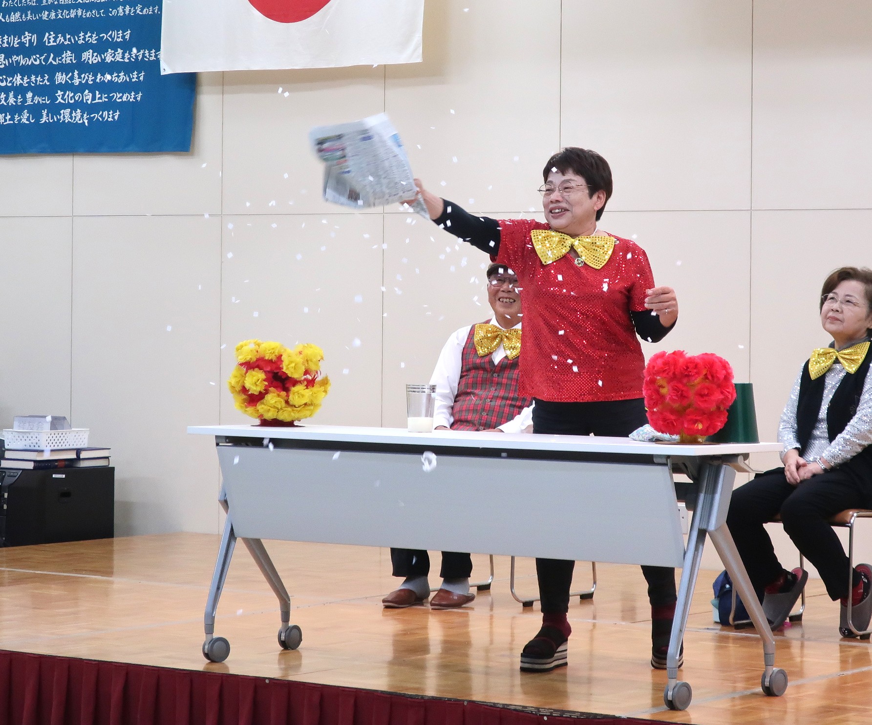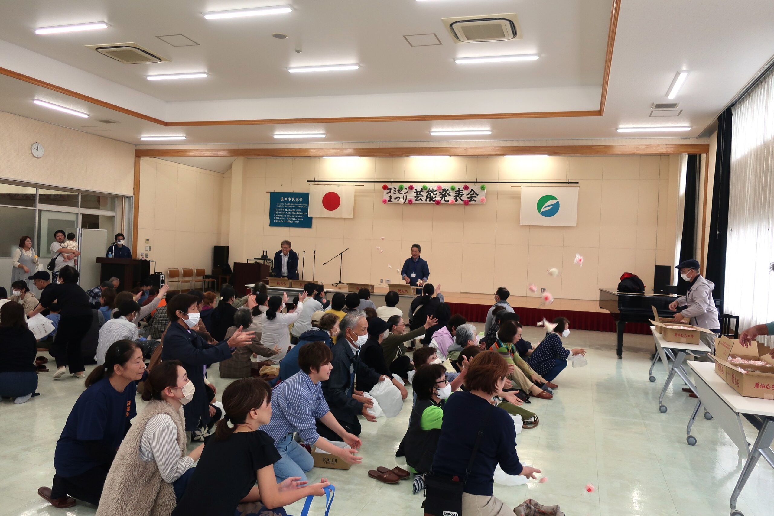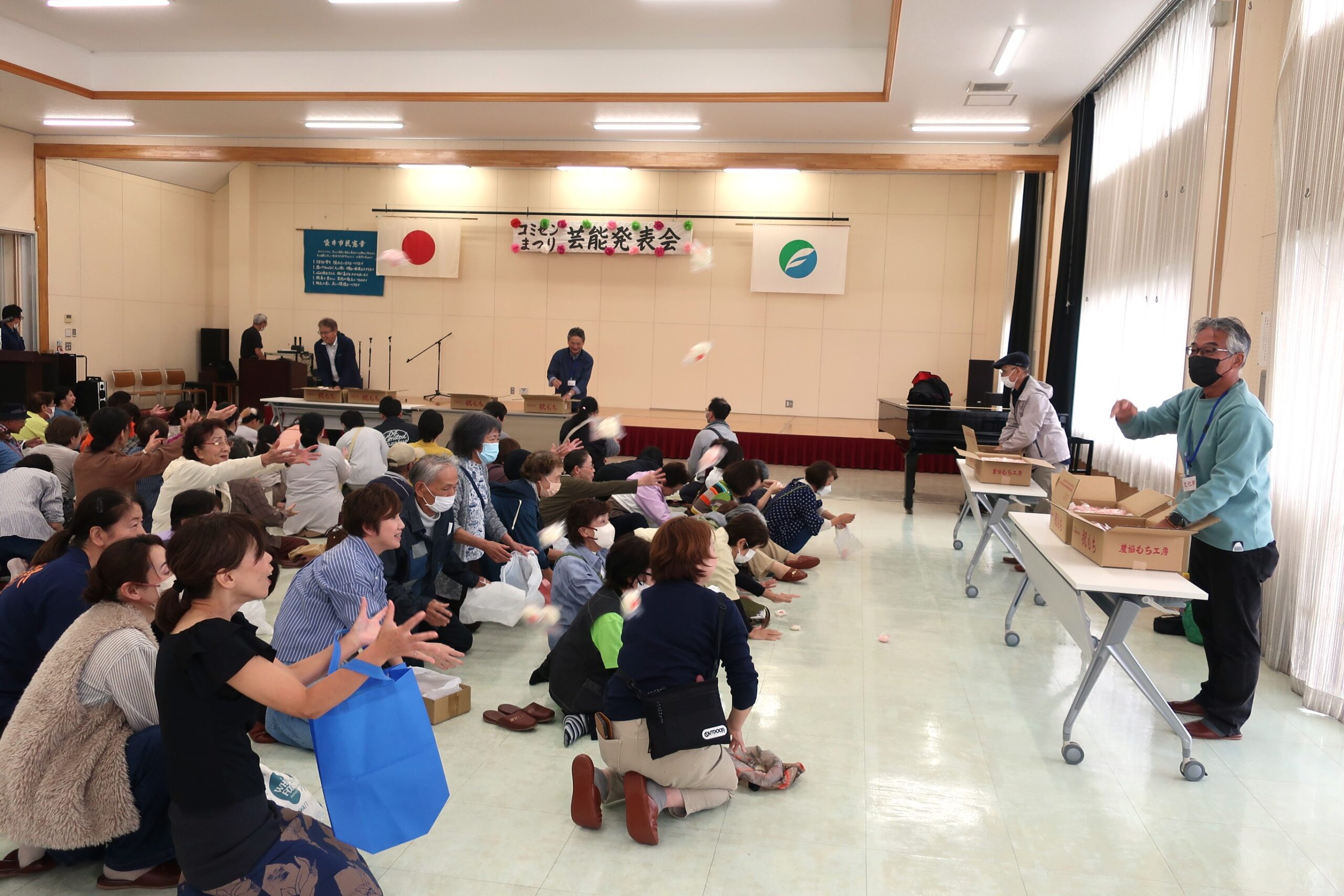 袋井北地区各クラブ・団体、個人(10チーム)の皆さんが日頃の練習の成果を発表し、 会場は大きな拍手に包まれました。 公演の締めくくりには恒例の「餅まき」が行われ、観客の皆さんも笑顔で楽しいひとときを過ごしました。