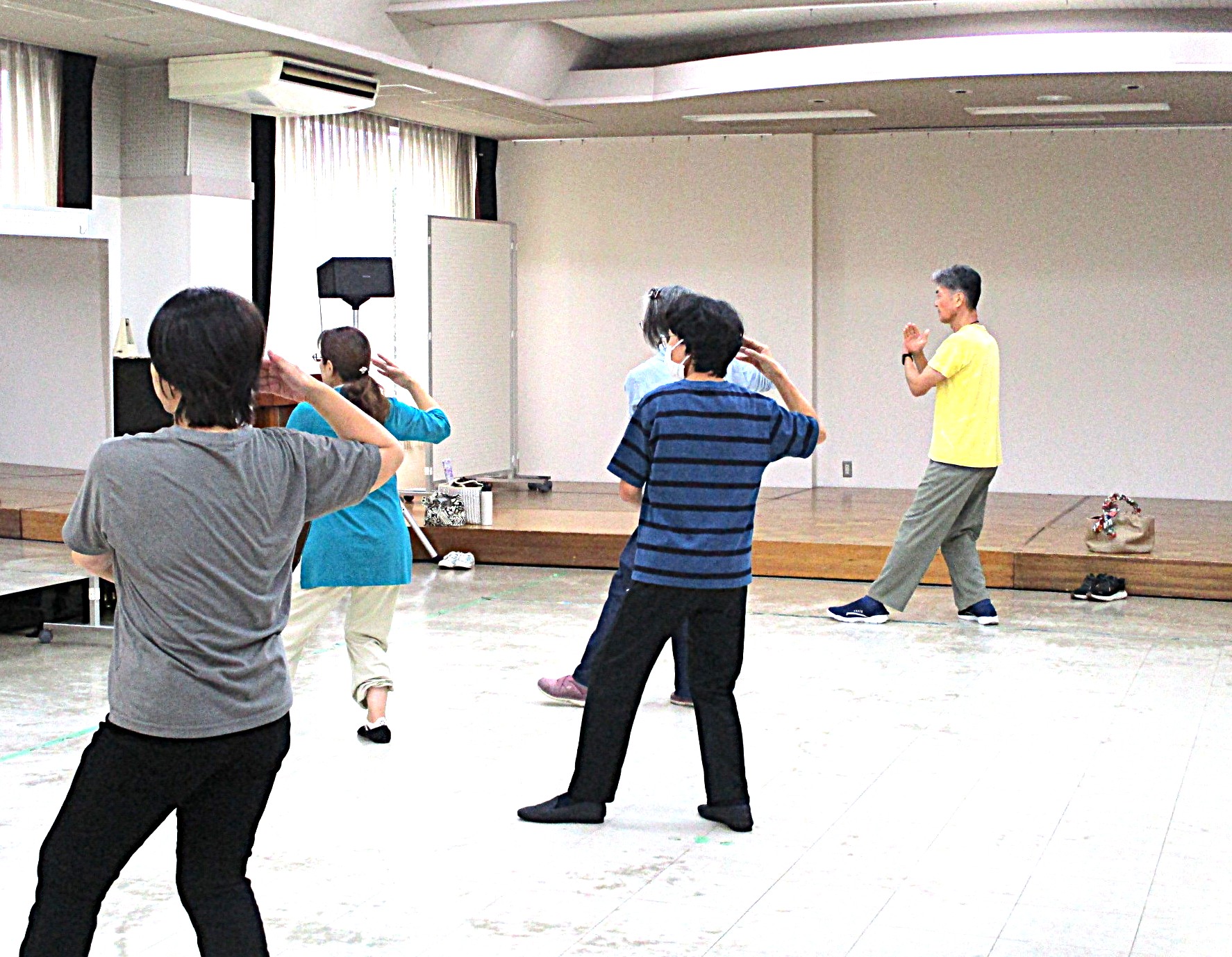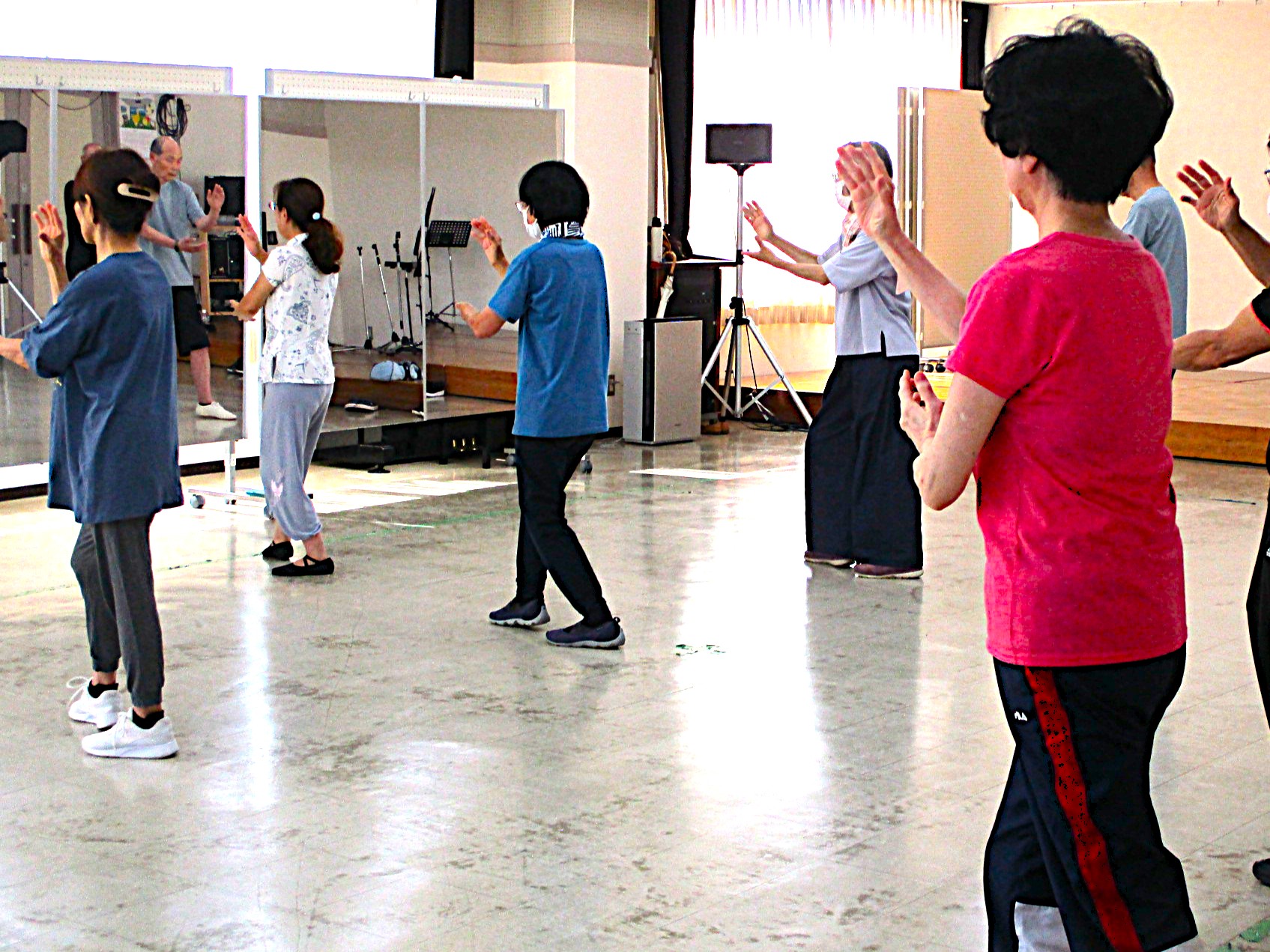 最初は先生の動作を真似するのが精一杯でぎくしゃくしていた方も、回数を重ねるごとにしなやかな動きに。「練習を重ねれば、振り付けで手や足を動かすのではなく、腰を動かすと自然に手が動くといった感じになってくるんですよ。」と先生。そんな姿になるには遠い道のりですが、熱心に練習を重ね、季節は秋となり、講座は終盤をむかえました。