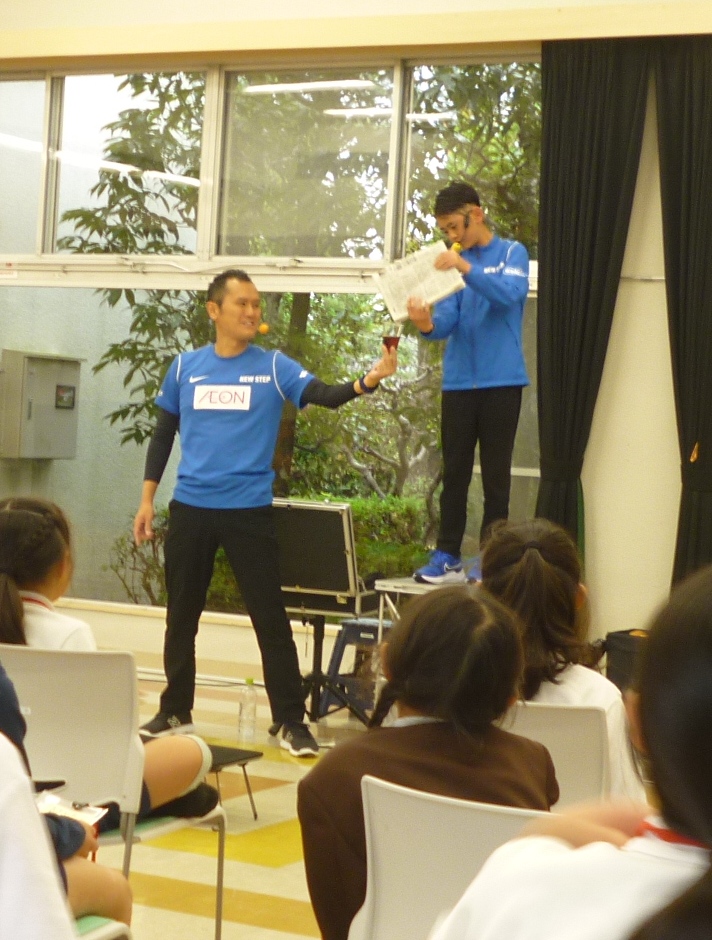 二人は親子で活動しており、コンビ名「NEW STEP」として、けん玉やマジックなどパフォーマンスを披露しました。