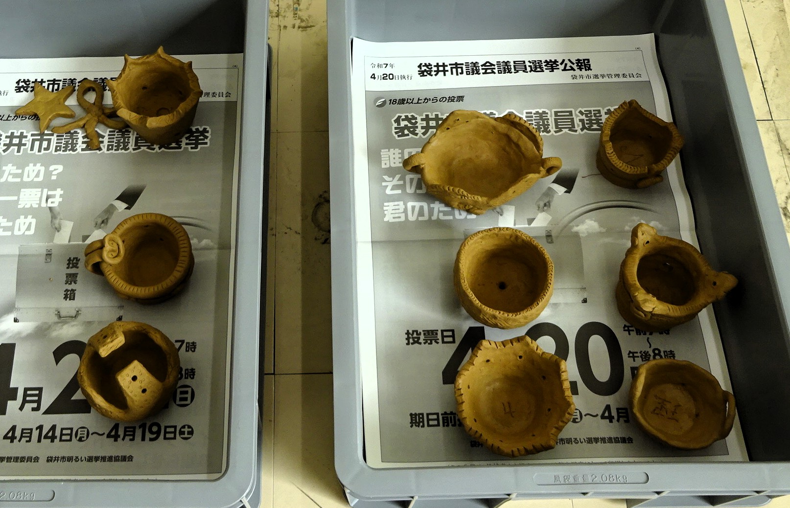 輪積みで形をつくり、思い思いのかたちに仕上げ模様を施します。