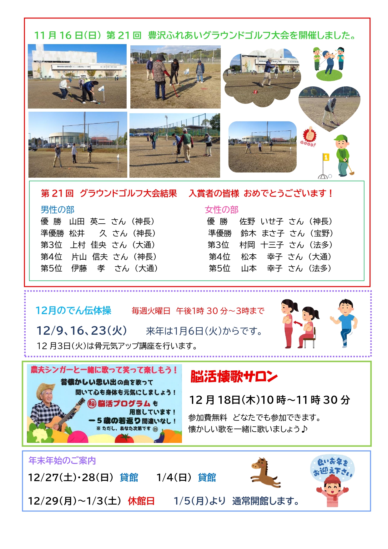 袋井市コミュニティセンターホーム > 新着情報 > 豊沢ふれあい会館だより(12月号)を発行しました。