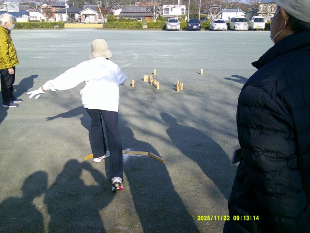 令和7年11月22日(土)の9時から袋井東コミュニティ広場で約55名(15チーム)が参加して、今回も各自治会単位に分かれ参加者は優勝を目指して楽しくゲームをおこないました。