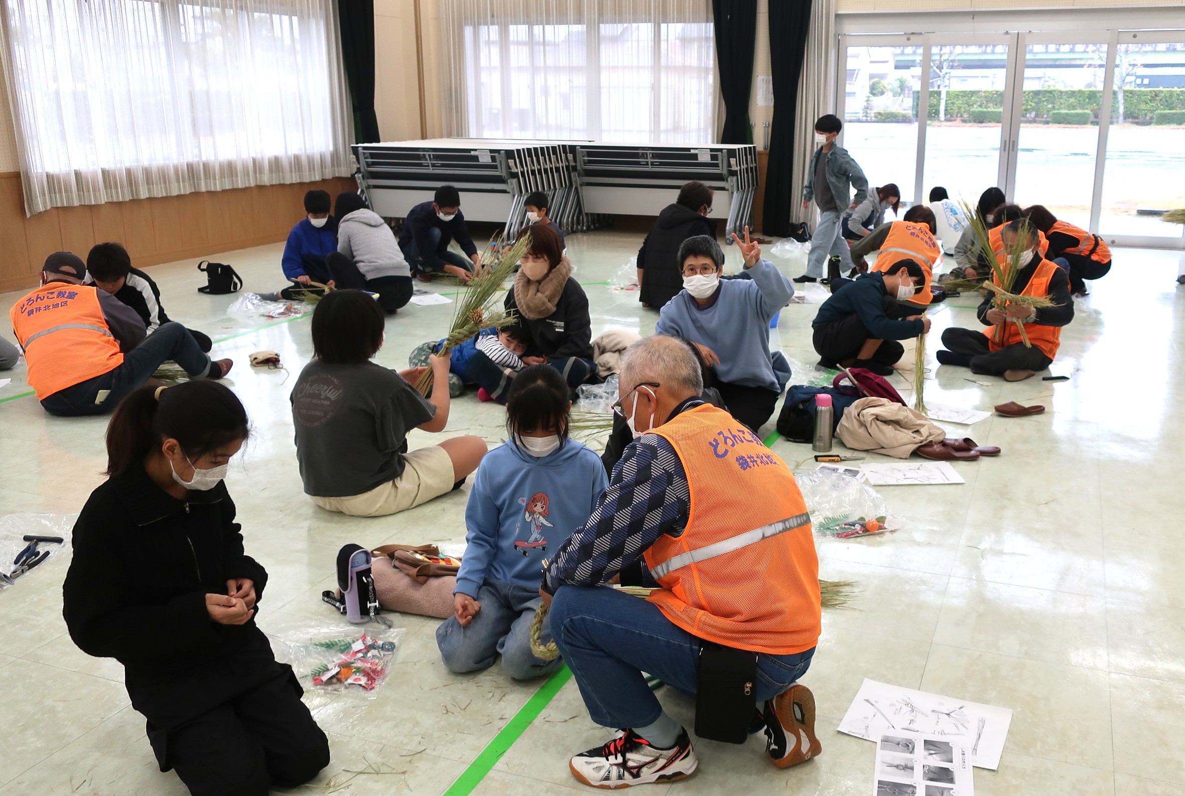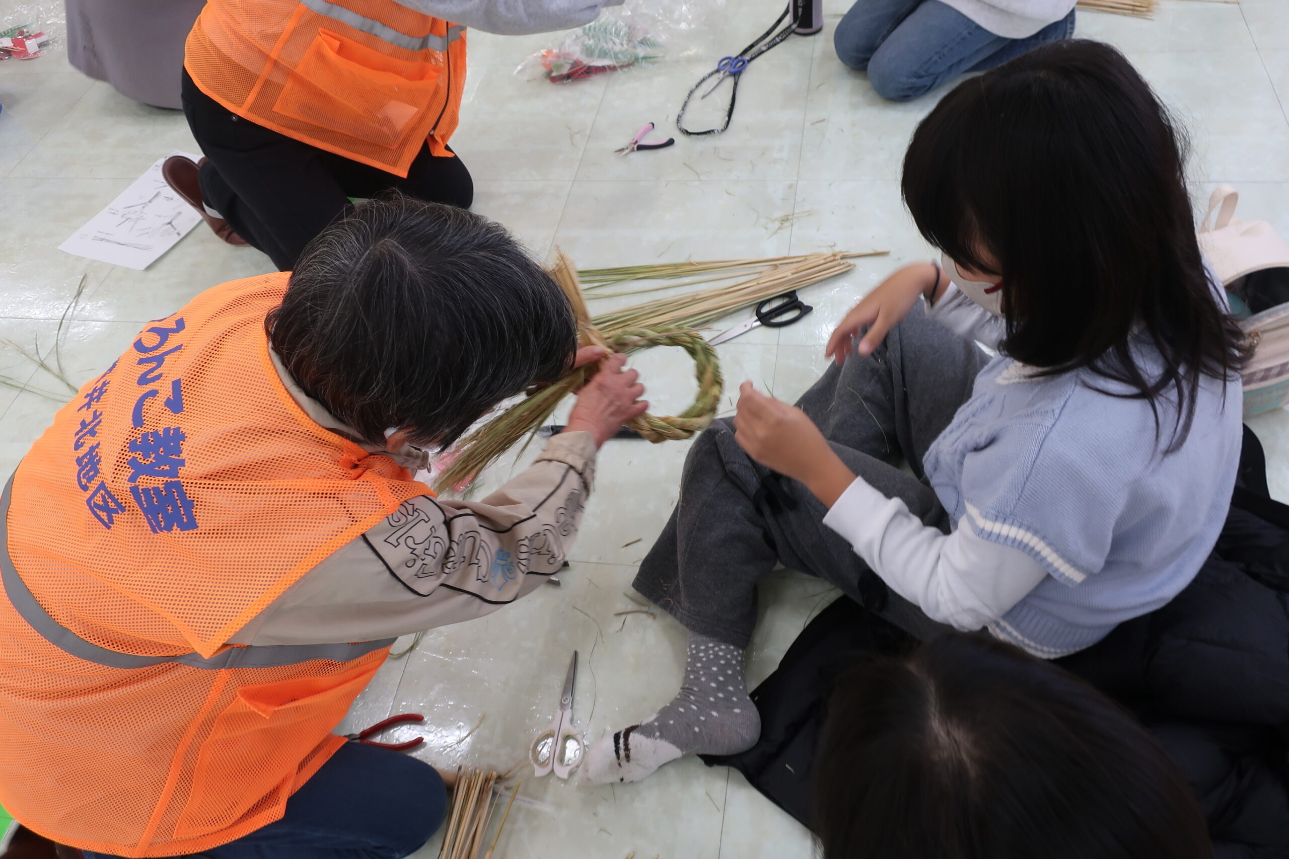 どろんこ教室の子どもたち(北小学校3・4・5・6年生)が、親子で「お正月しめ飾り」作りに挑戦しました。