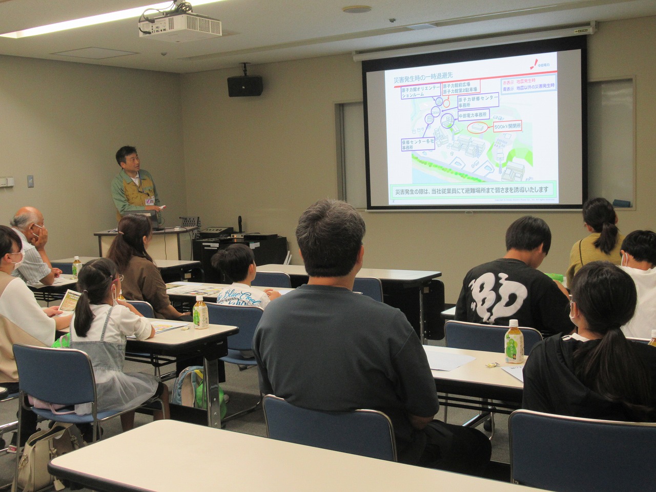 原子力館会議室で発電所の概要と地震や津波の対策について説明をしてくれました。