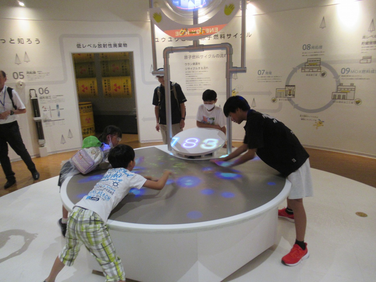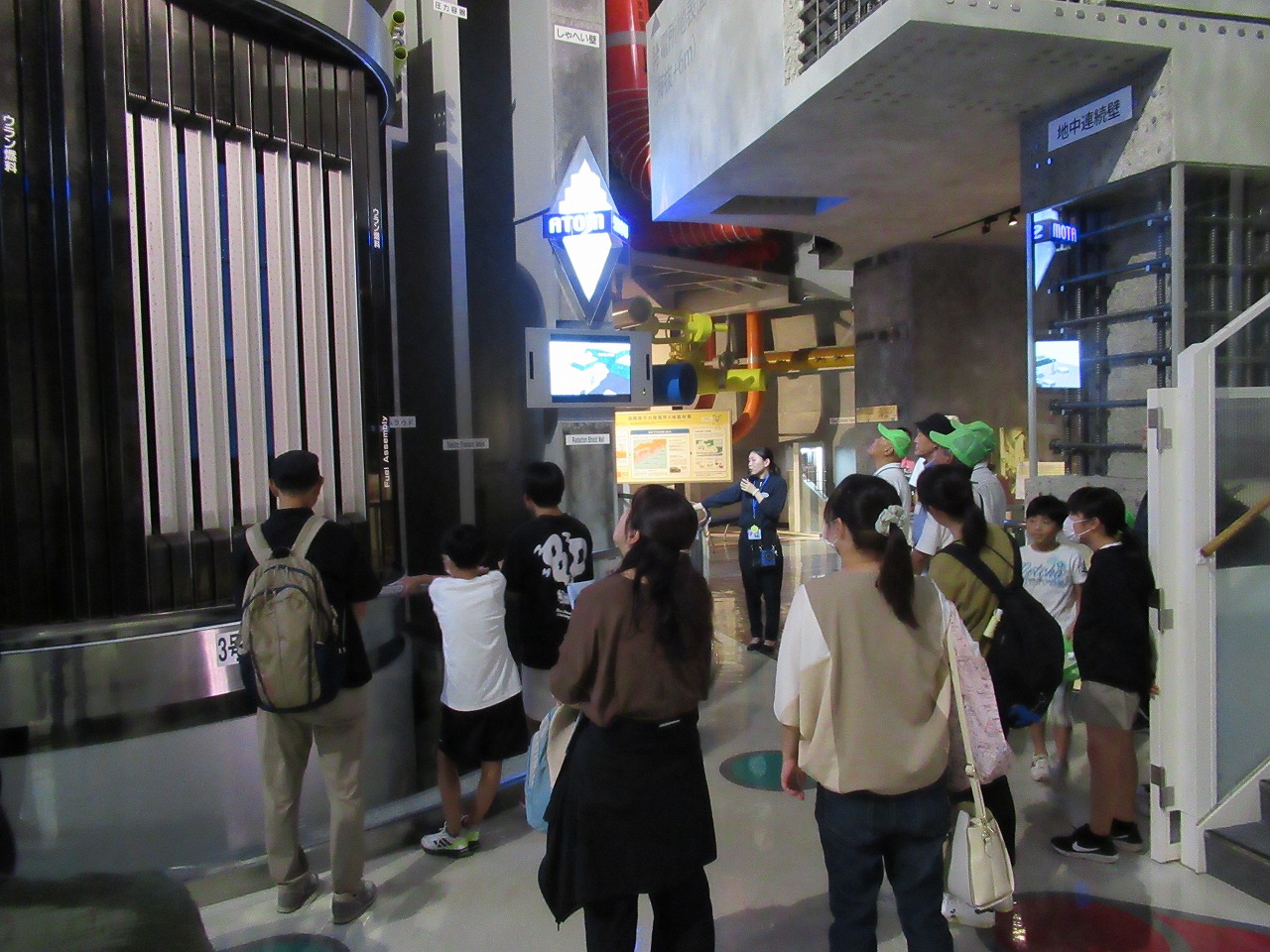 説明を受けた後原子力館内に移動して、実物大の防波壁模型・原子炉模型の前で原子力発電のしくみや構造をわかりやすく紹介してくれました。圧倒される実際のスケールで光や音で体感することができました。