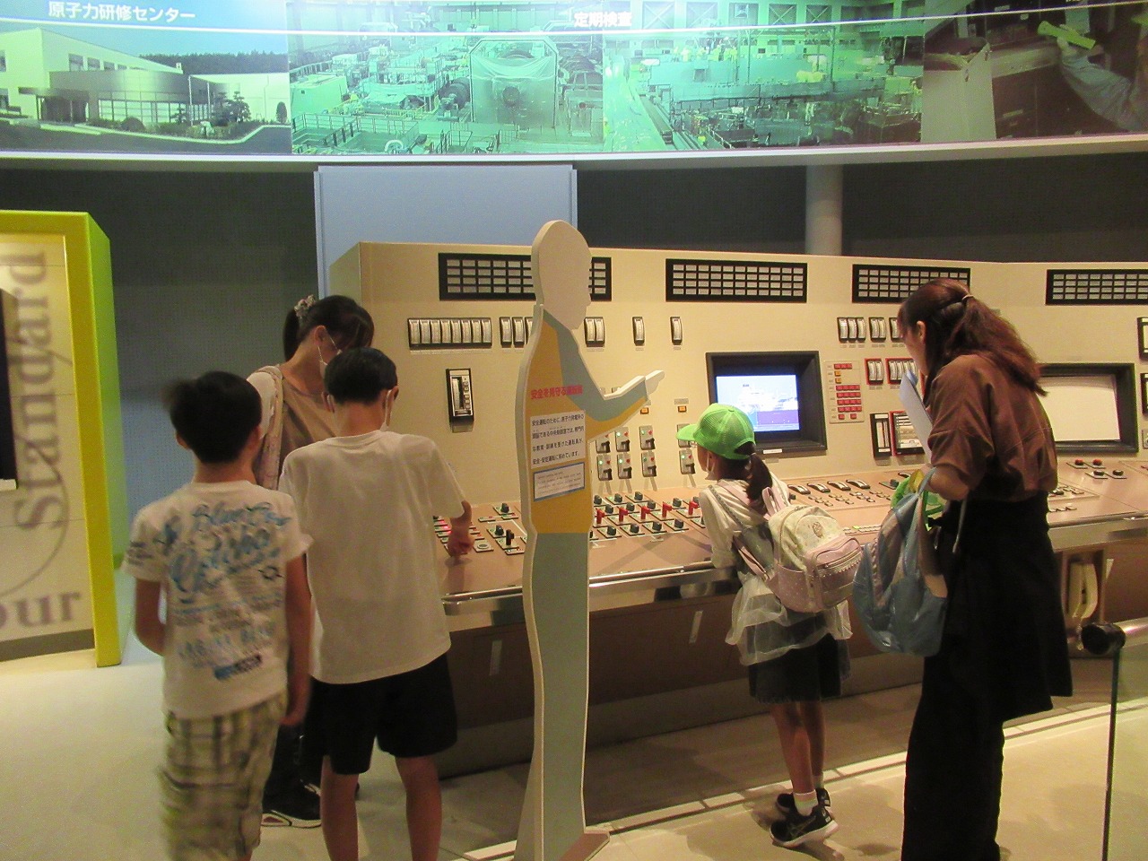 実物大制御盤のコーナーではたくさんのボタンやモニターを前に操作を体験できました。