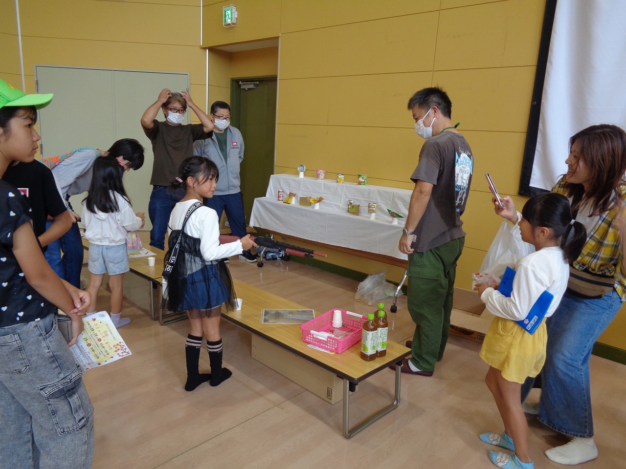 「射的」は、標的のお菓子や食品をねらい上手に当てて景品をゲットしていました。