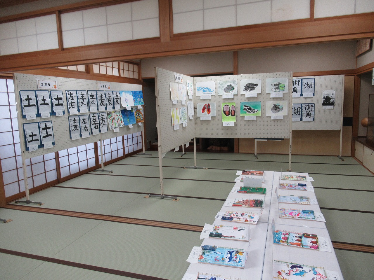 和室には、笠原こども園・笠原小・浅羽中の子どもたちの作品を展示し、多くの来館者に見てもらえました。