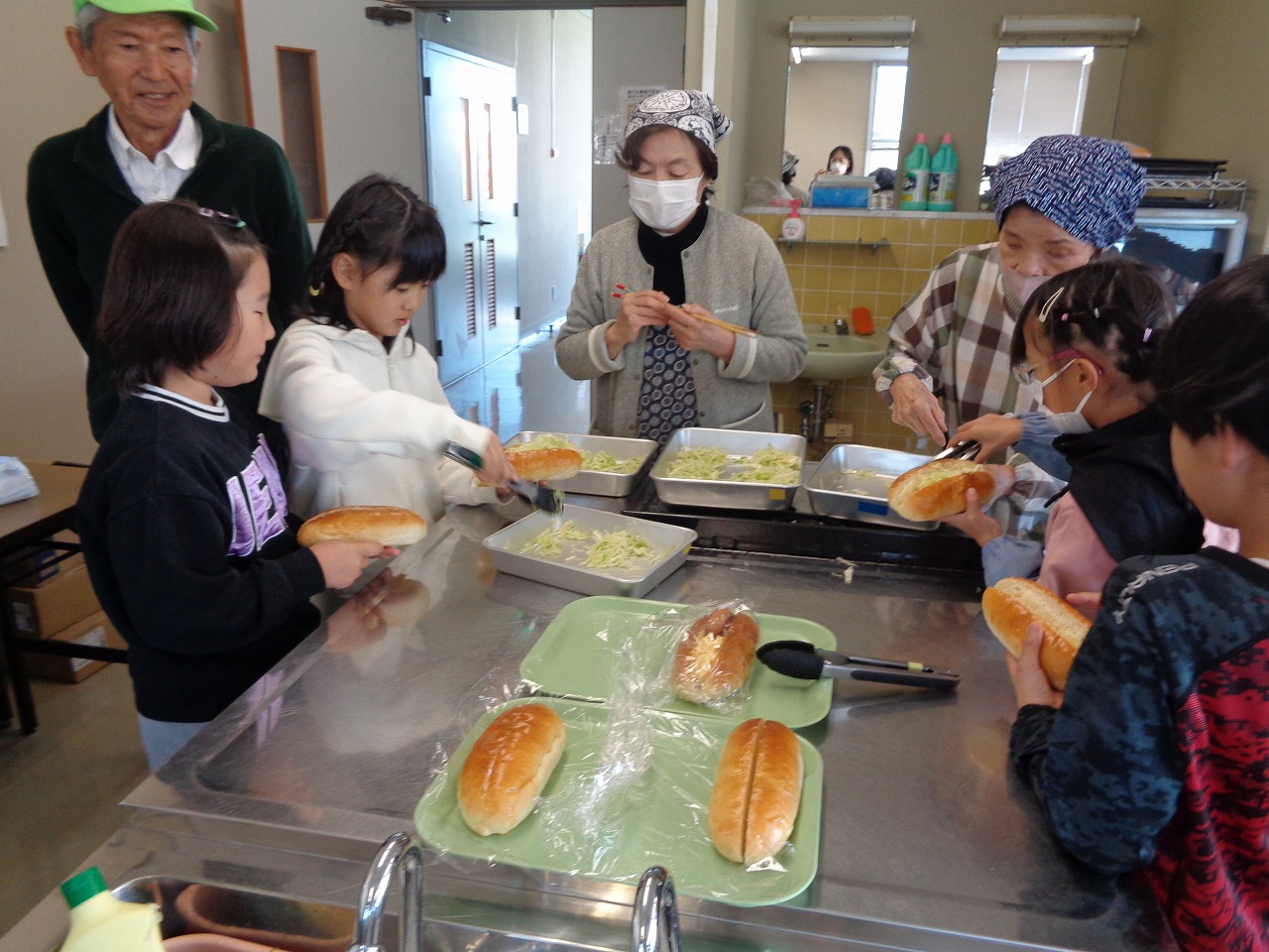 挟む具は、たまごとウインナー、炒めたキャベツです。クッキング学級のみなさんが調理してくれました。