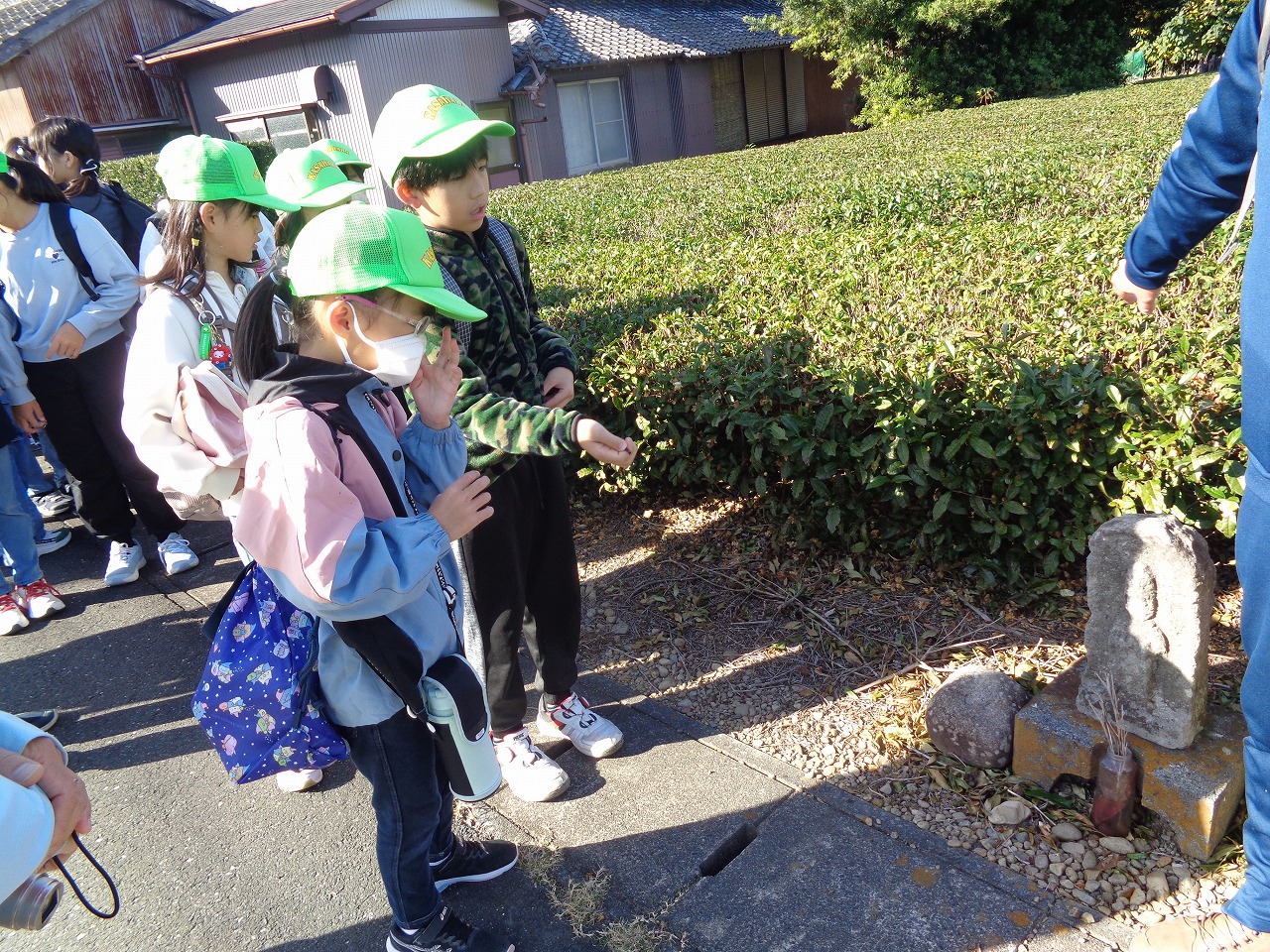 三沢の茶畑のところの道路脇に小さいですが、道祖神(どうそじん)があると教えていただきました。車で通ると見逃されてしまい知っている子も少なかったです。