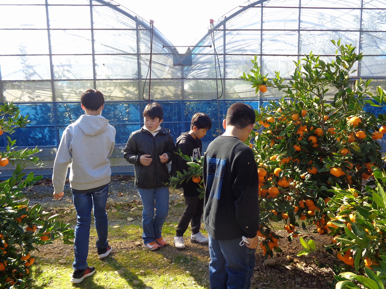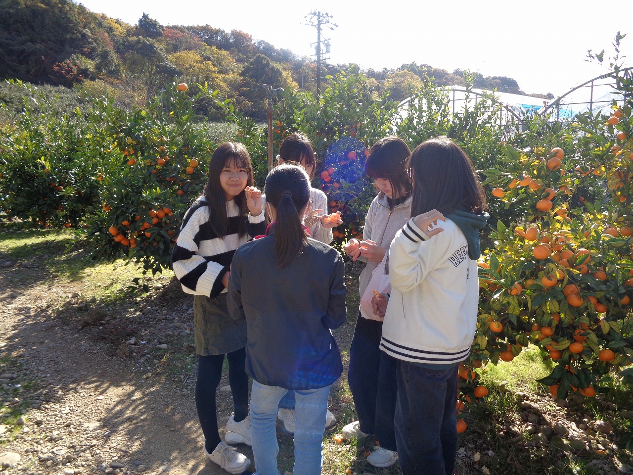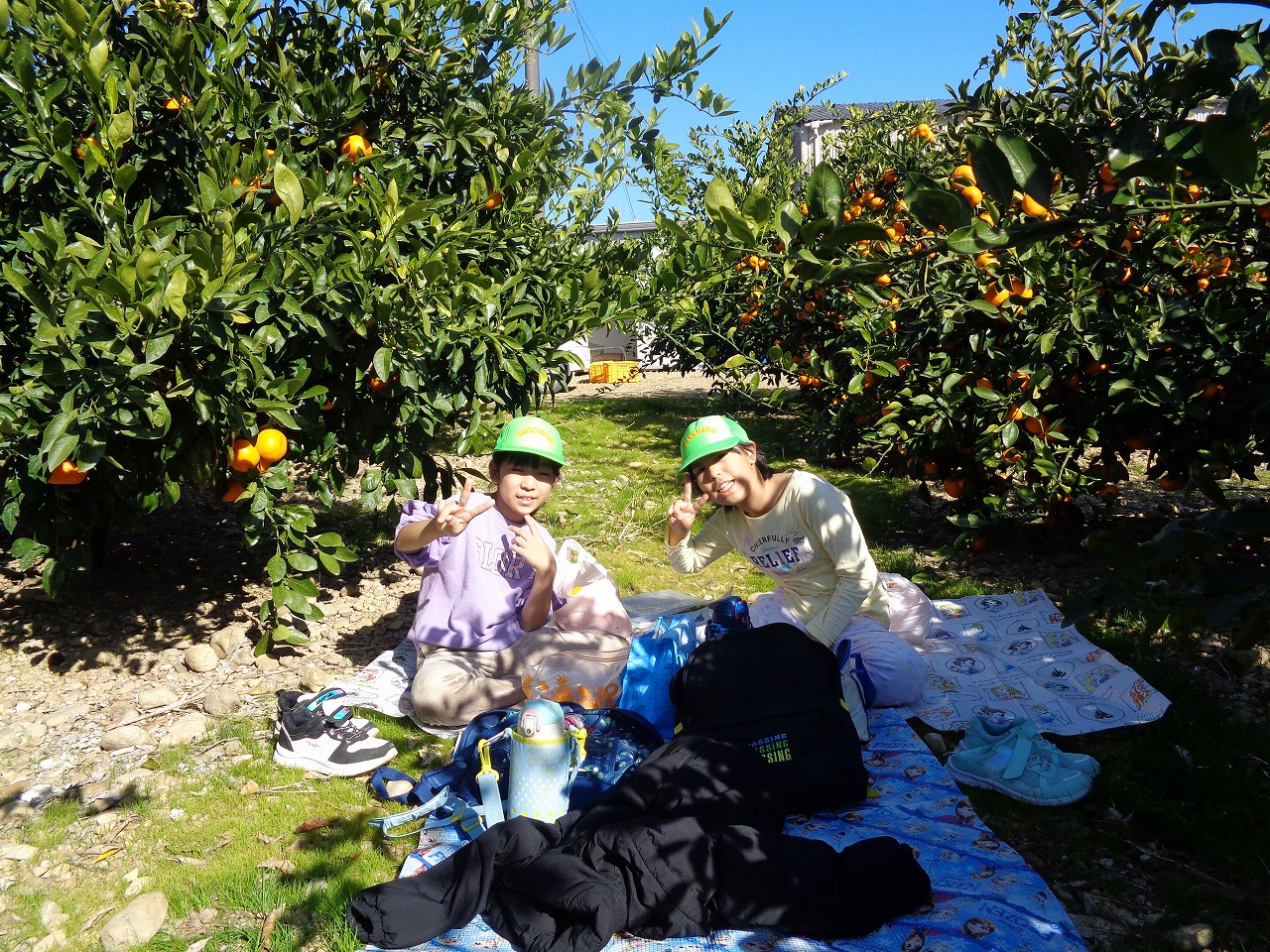 コミュニティセンターから例年以上の距離を歩いてきたので「お腹すいた~!」とたくさんのみかんを食べていました。