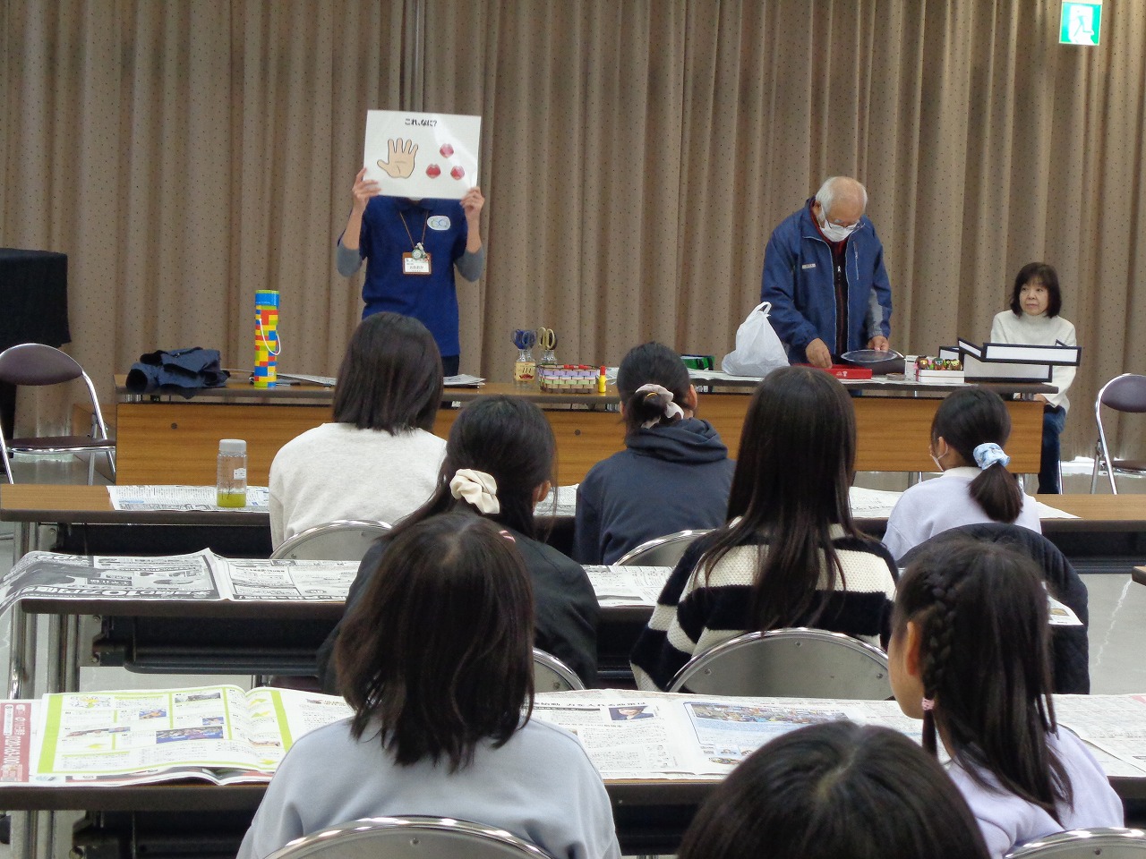 工作の前に、絵を見て何の言葉なのかを当てるクイズに挑戦しました。頭のやわらかい子どもたちは、すぐに手を挙げてほとんど正解していました。