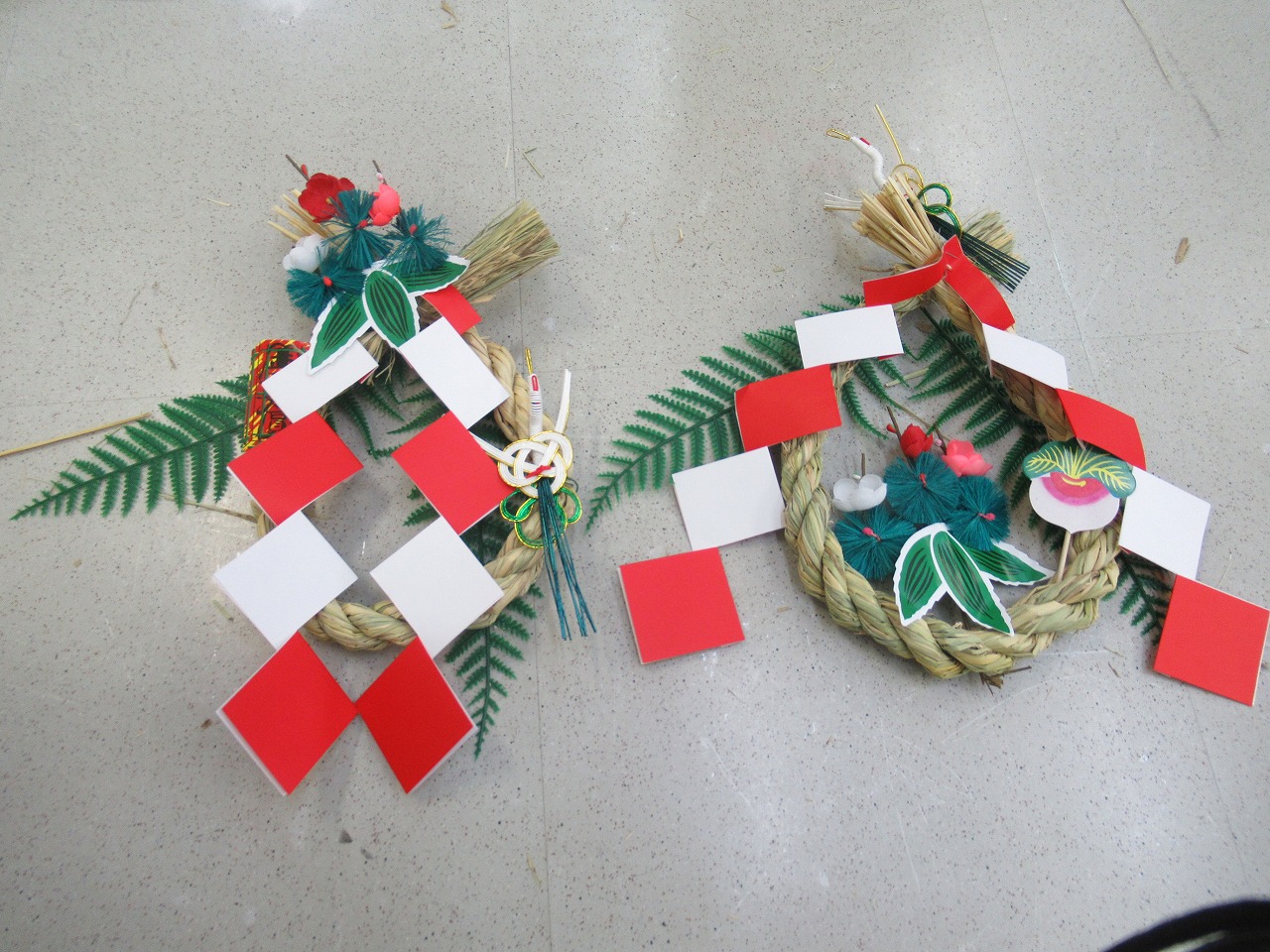 輪飾りに自由に自分好みの飾りをつけて正月しめ飾りが出来ました!