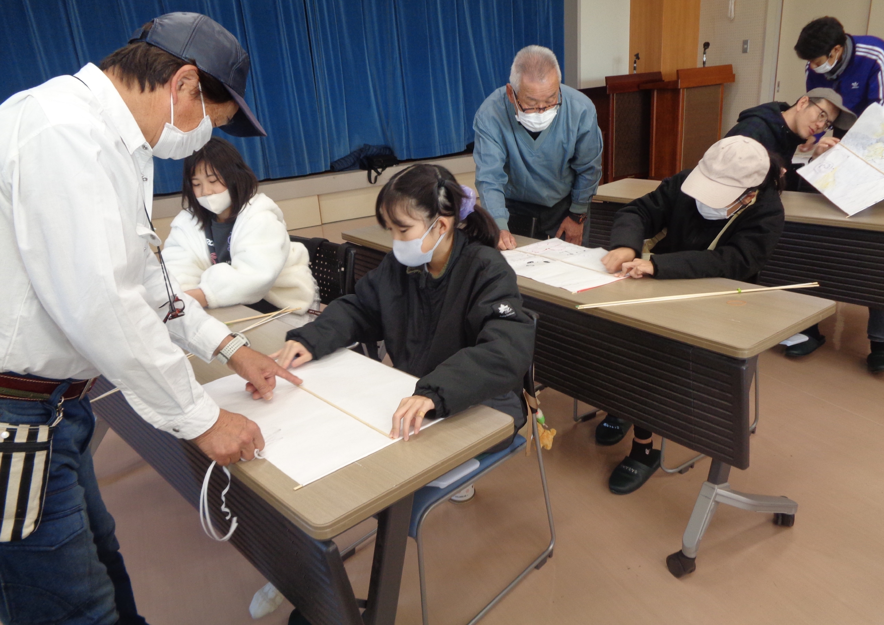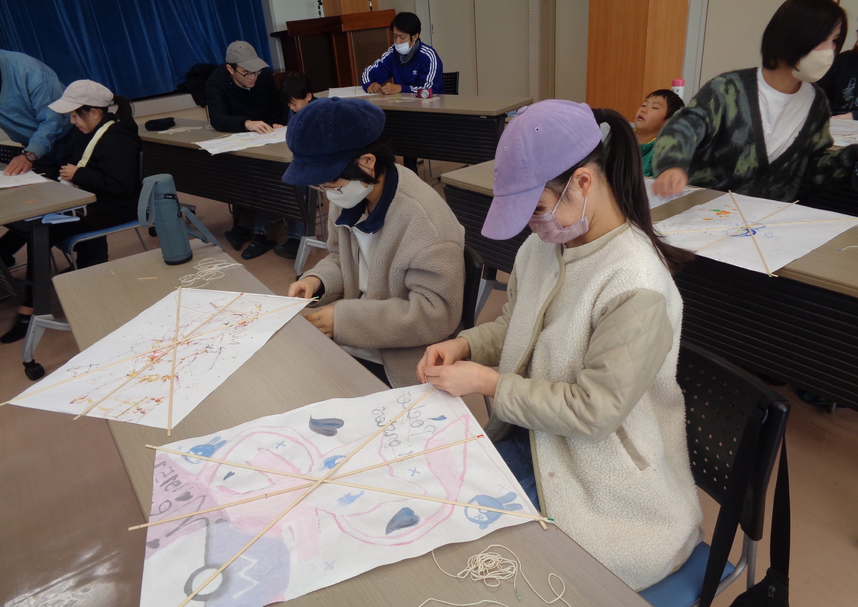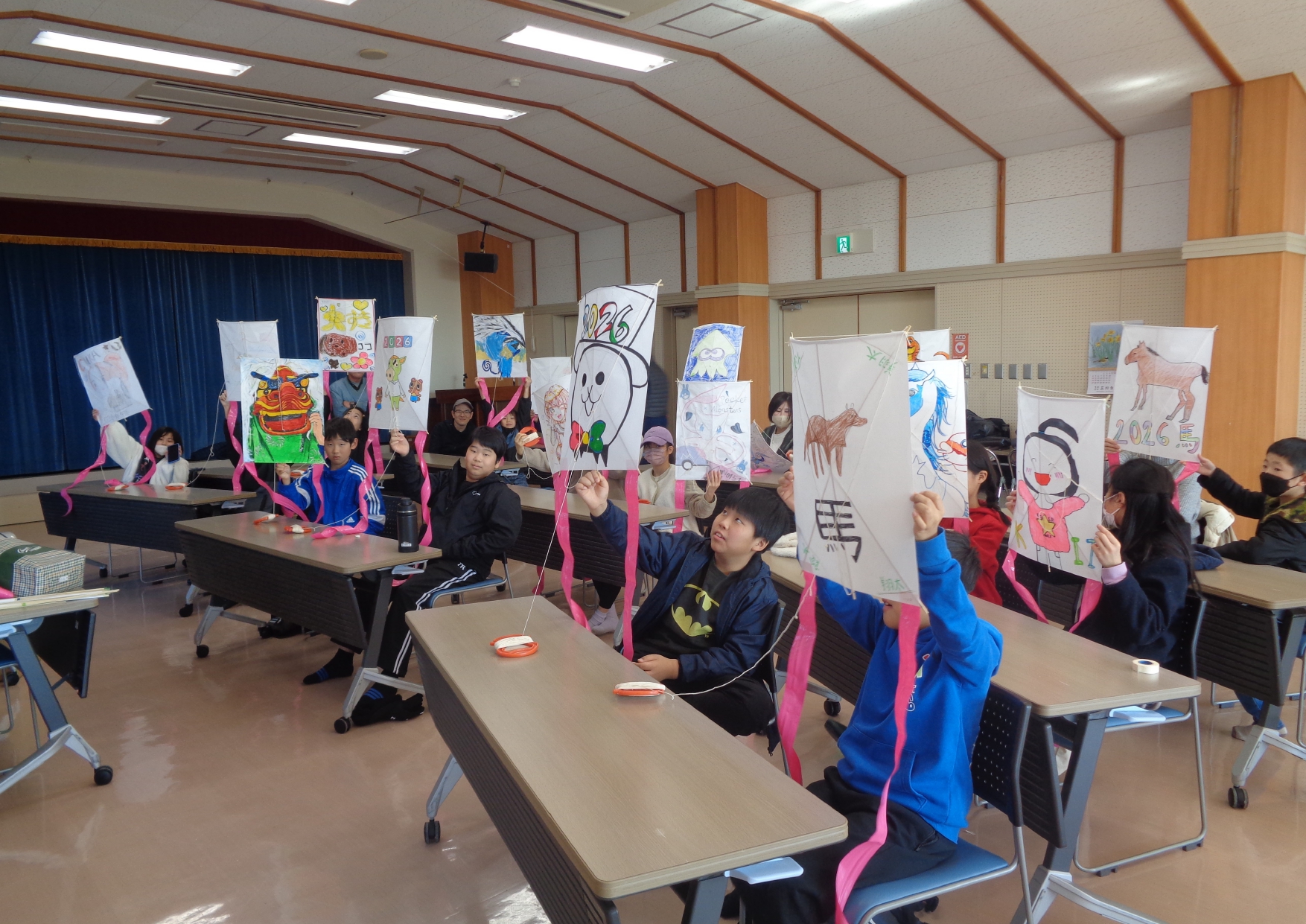 1月10日(土)に、凧作りと凧揚げに挑戦しました。 今回、凧作りを教えてくれたのは大谷里山の会の皆さんです。 子どもたちが出来るだけ上手に作れるようにと、材料の下準備をして頂いたおかげで、みんな楽しく上手に作ることが出来ました。