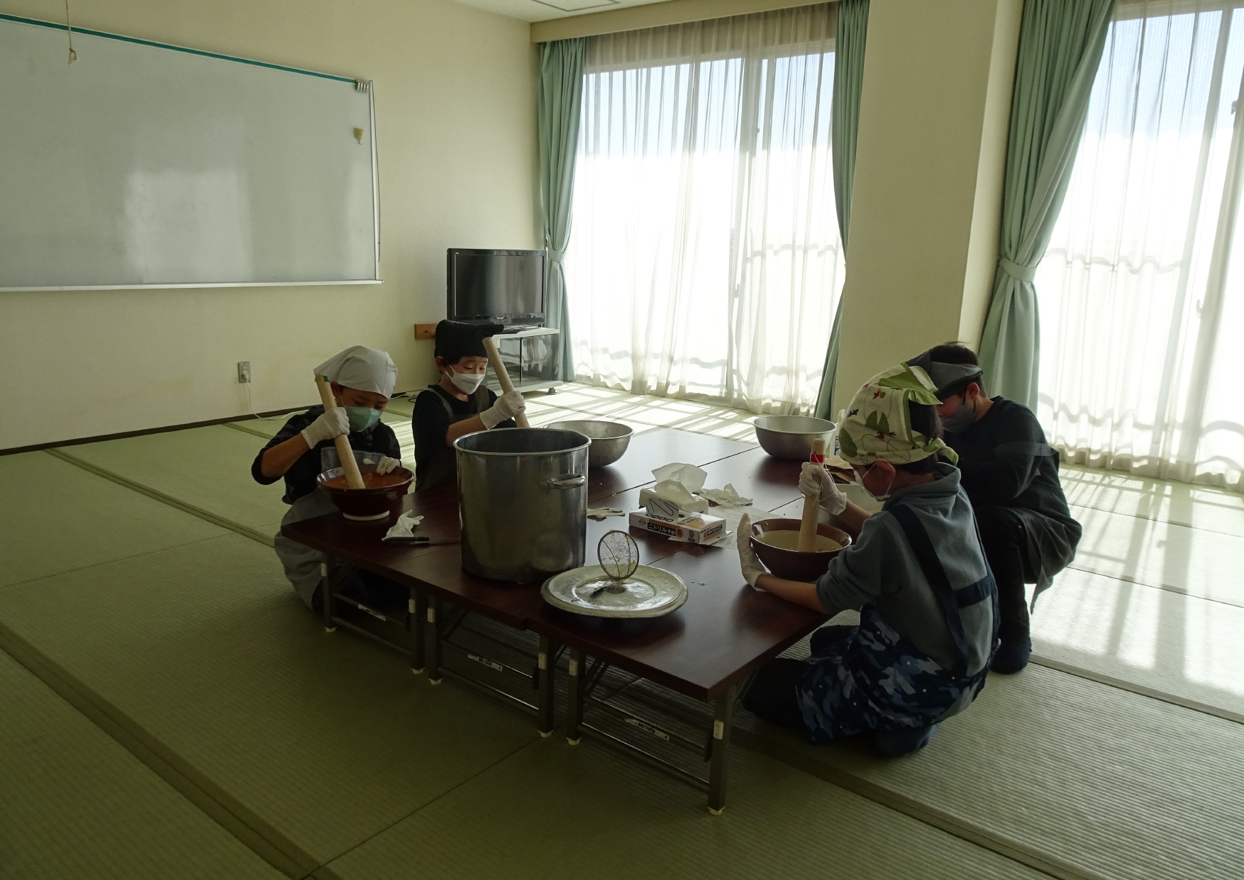 グループに分かれて、さつまいもご飯と豚汁、ピーナッツクッキーとスイートポテト、トマトのパウンドケーキを作りました。