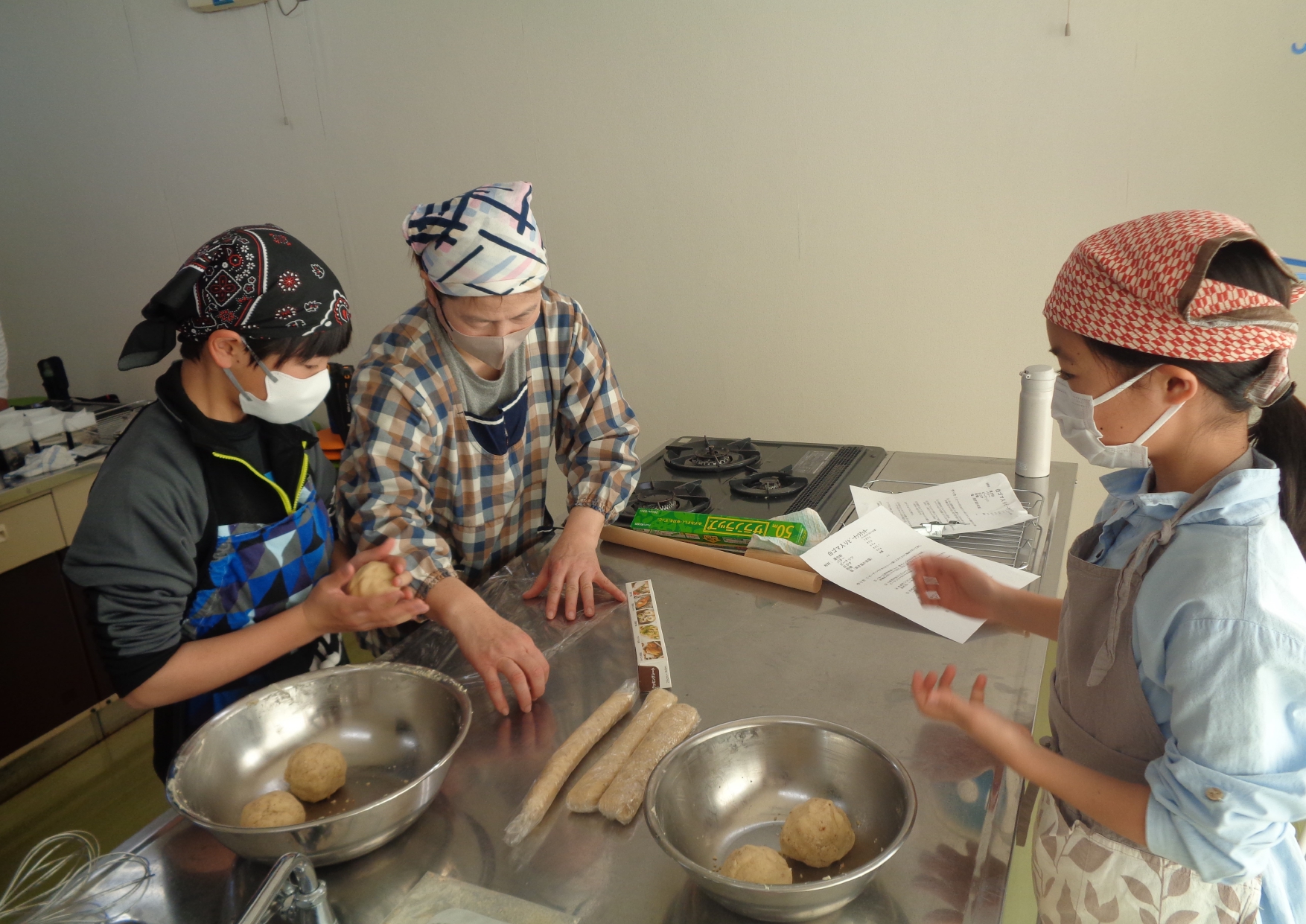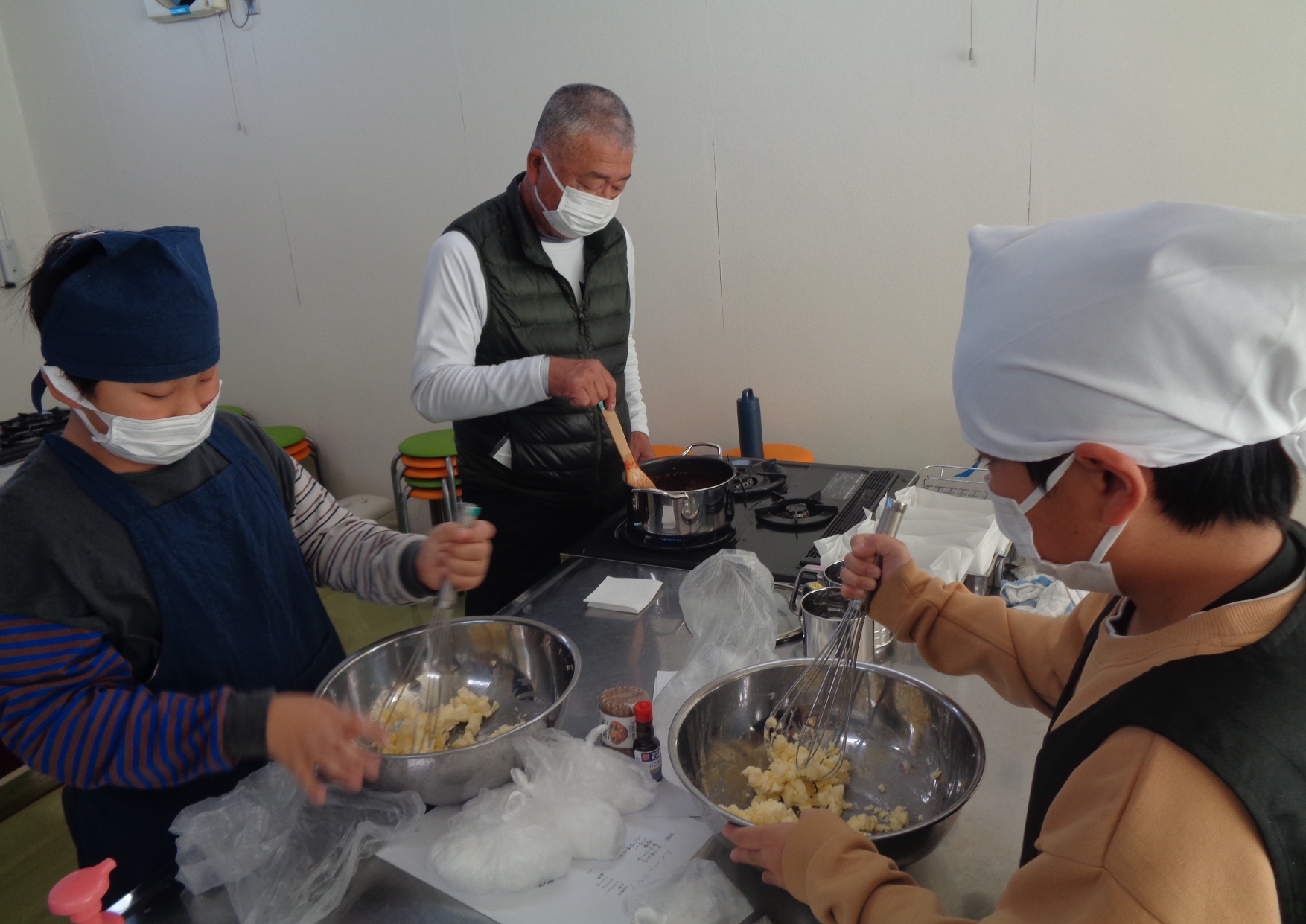 インフルエンザの流行で参加者が減ってしまい大変でしたが、お昼にさつまいもご飯と豚汁を食べ、おみやげにクッキーとパウンドケーキ、スイートポテトを持ち帰りました。