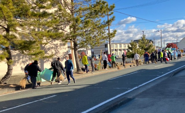 当日は気温が0度近くまで下がる厳しい寒さとなりましたが、松並木愛護会、自治会会員、協賛企業、健全育成委員、子ども会、袋井市地域職員など総勢147名が参加しました。